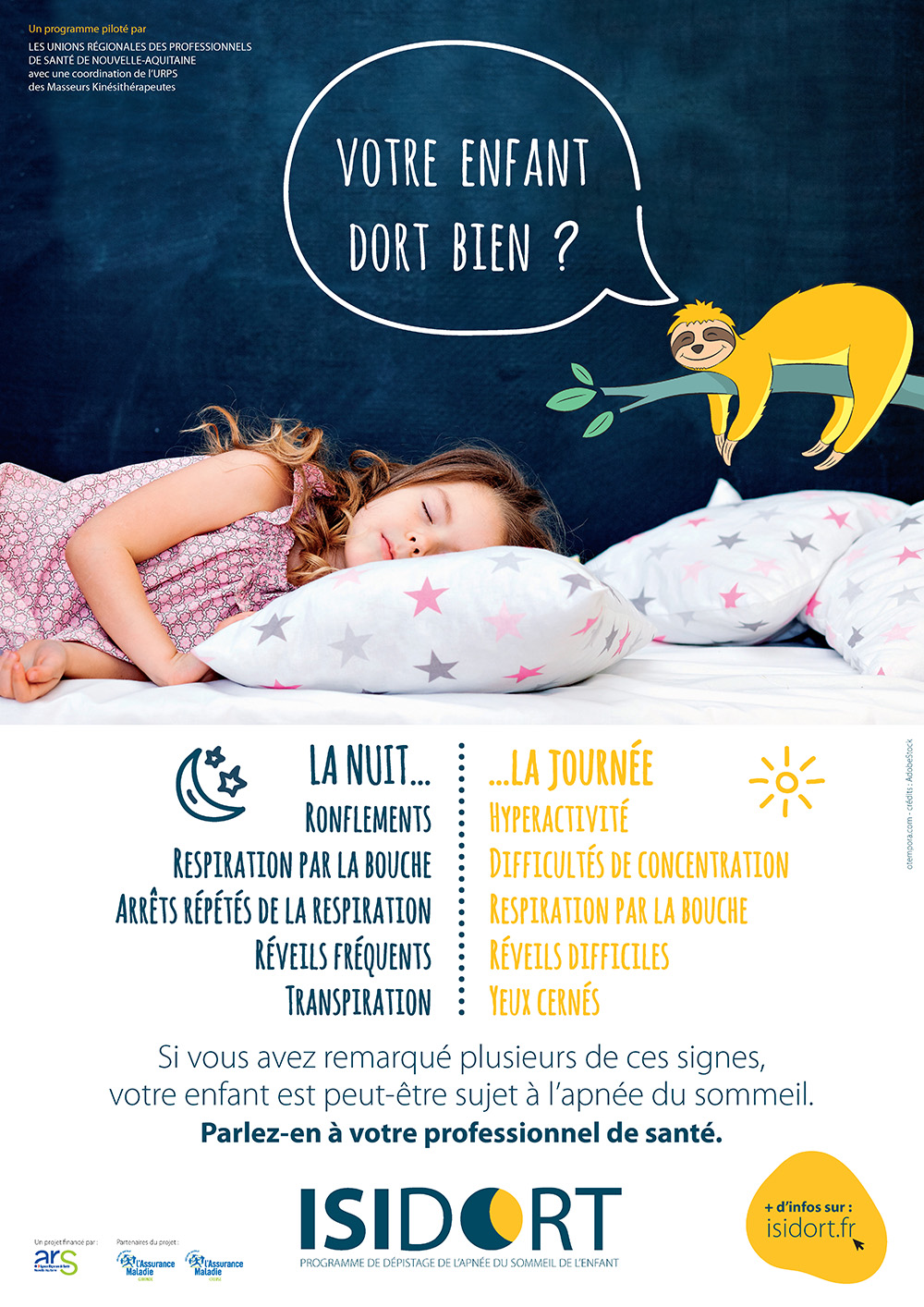 Chez l’enfant, les SAHOS sont responsables de troubles de la concentration et retard scolaire, irritabilité, difficulté au réveil, agitation nocturne et énurésie, trouble de la croissance faciale et de la posture, obésité, accidents domestiques par somnolence diurne.